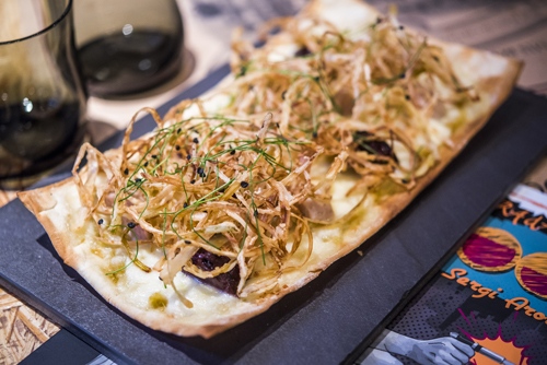 Y cómo no, siempre nos quedará la carta… Dividida en 4 secciones, incluye clásicos, novedades y revisiones como la de la sardina, entre los fríos, que se presenta ahora con guacamole y pasta wanton. Entre los calientes, hay que señalar la llegada del tan solicitado Bocata de calamares de Sergi Arola, de bocado y con un llamativo pan negro de tinta de calamar; las vieiras cambian de fórmula y ahora van acompañadas de setas y jamón. Y dos apetecibles recetas, las Patatas salteadas con romero, huevos escalfados y jamón ibérico y los Raviolis de rabo de toro y foie. Las ensaladas se vuelven más atractivas y su Caesar regresa a la versión 1.0 y se la hace el cliente en la mesa; y la propuesta de Habitas y alcachofas será uno de los must de la carta. Entre las exquisitas Coca pizzas, caseras y elaboradas con harinas orgánicas, destacan la de Salmón con teriyaki y la de Butifarra blanca y negra con puerro, en total cinco variedades para elegir. El dulce final lo ponen los postres, todos ellos caseros, como la Piña colada con cremoso de chocolate blanco.